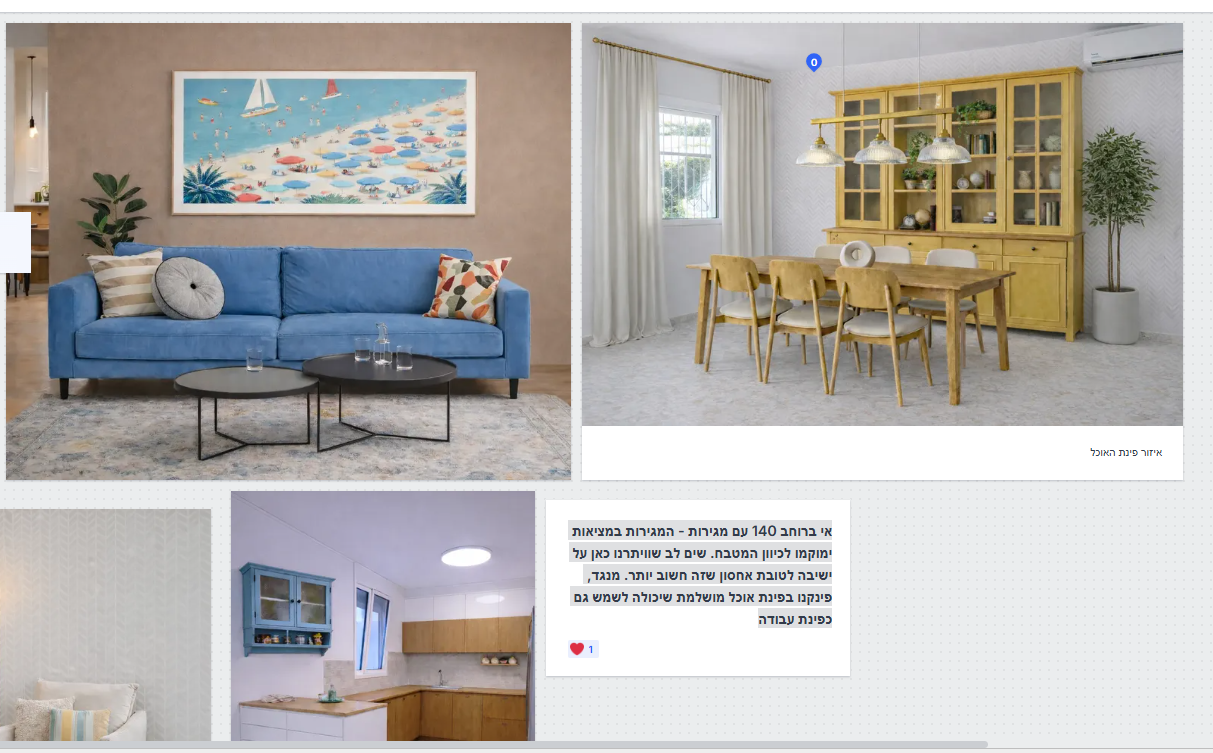 לפני שפגשתי את חגיתא הרגשתי מוצפת. כל כך הרבה החלטות, רהיטים, צבעים… לא ידעתי מאיפה להתחיל. בפגישה אחת הכל פתאום הסתדר. יצאתי עם כיוון ברור ועם תחושת הקלה ענקית."