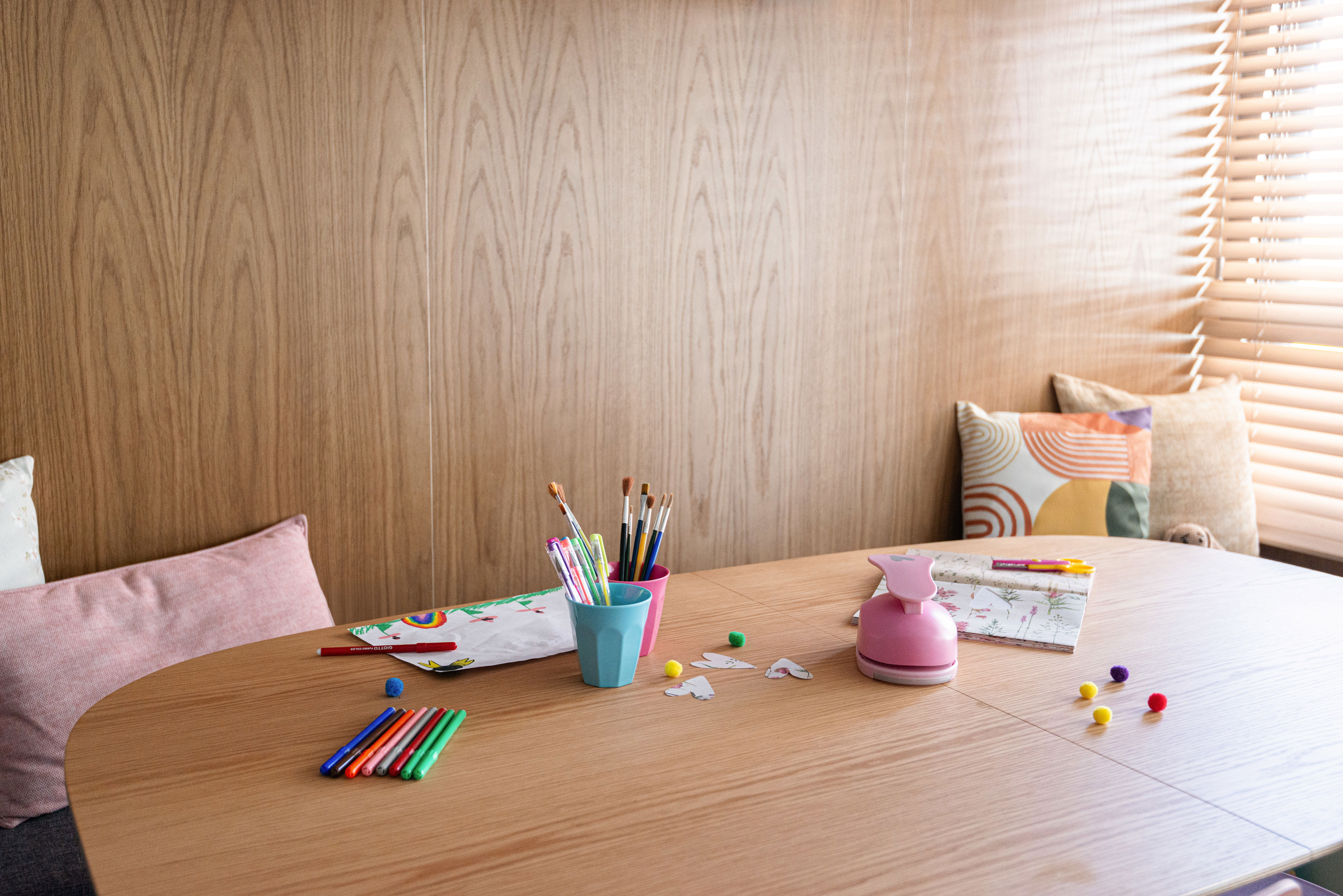 5. אזור אכילה "חצי סטרילי": אנחנו רוצות שהם יהיו לידנו בסלון, אבל לא רוצות למצוא פתיתים בין כריות הספה. הטיפ שלי הוא ליצור אזור ייעודי לאכילה בתוך הסלון, שהוא לא על הספה או על השטיח. זה יכול להיות פוף נפרד שקל לנקות ואפשר לשבת ולאכול עליו מעדן או חטיף, שולחן ילדים קטן או ספסל עץ. ככה הם חלק מההתרחשות, אבל הלכלוך נשאר באיזור שמתנקה ב"וויש" אחד.