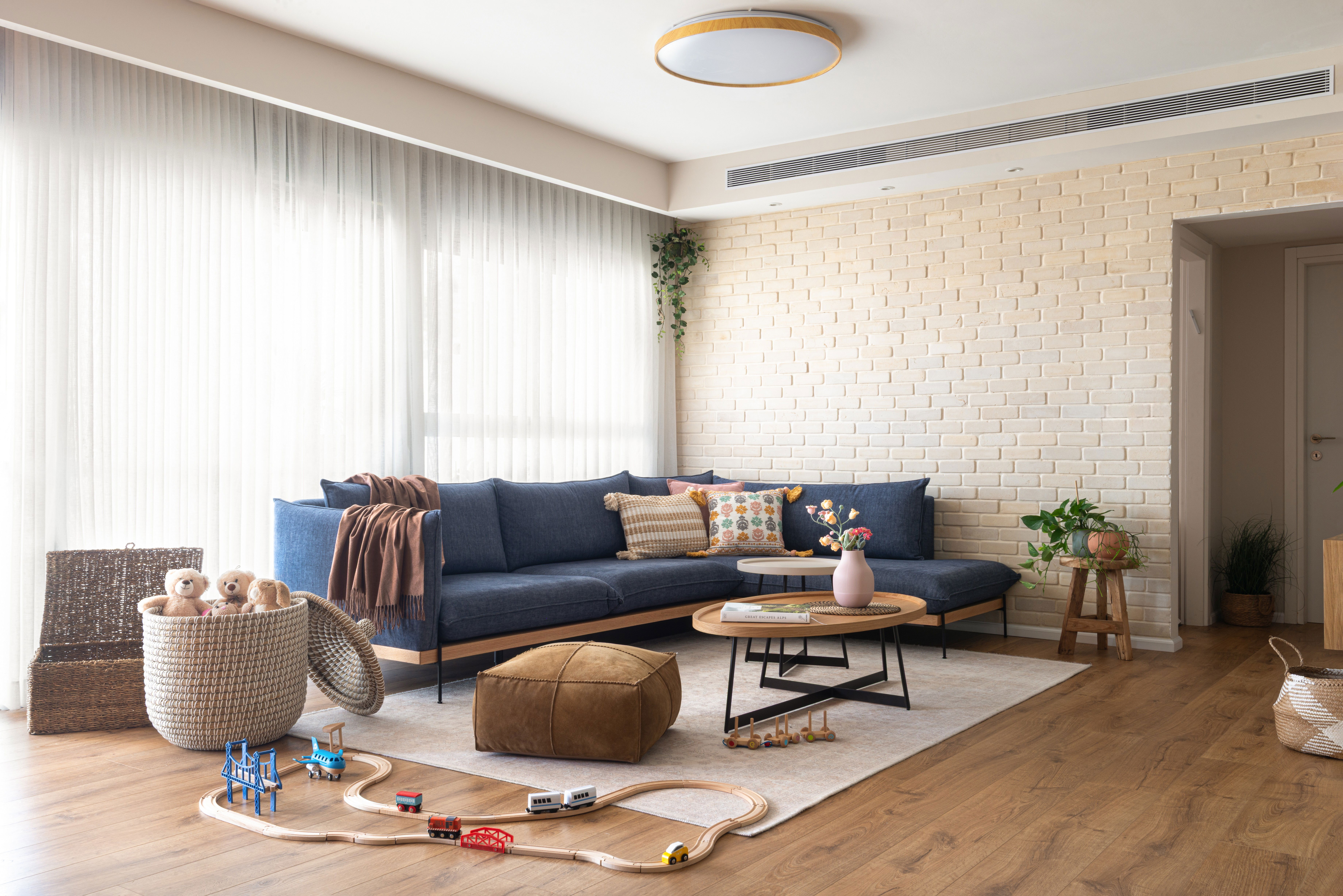 .2. גמישות: בחרנו שולחנות סלון קלים (שולחנות "טיפה" או עגולים) שאפשר להזיז בשנייה הצידה כשהילדים מחליטים להפוך את הסלון לזירת הופעות
